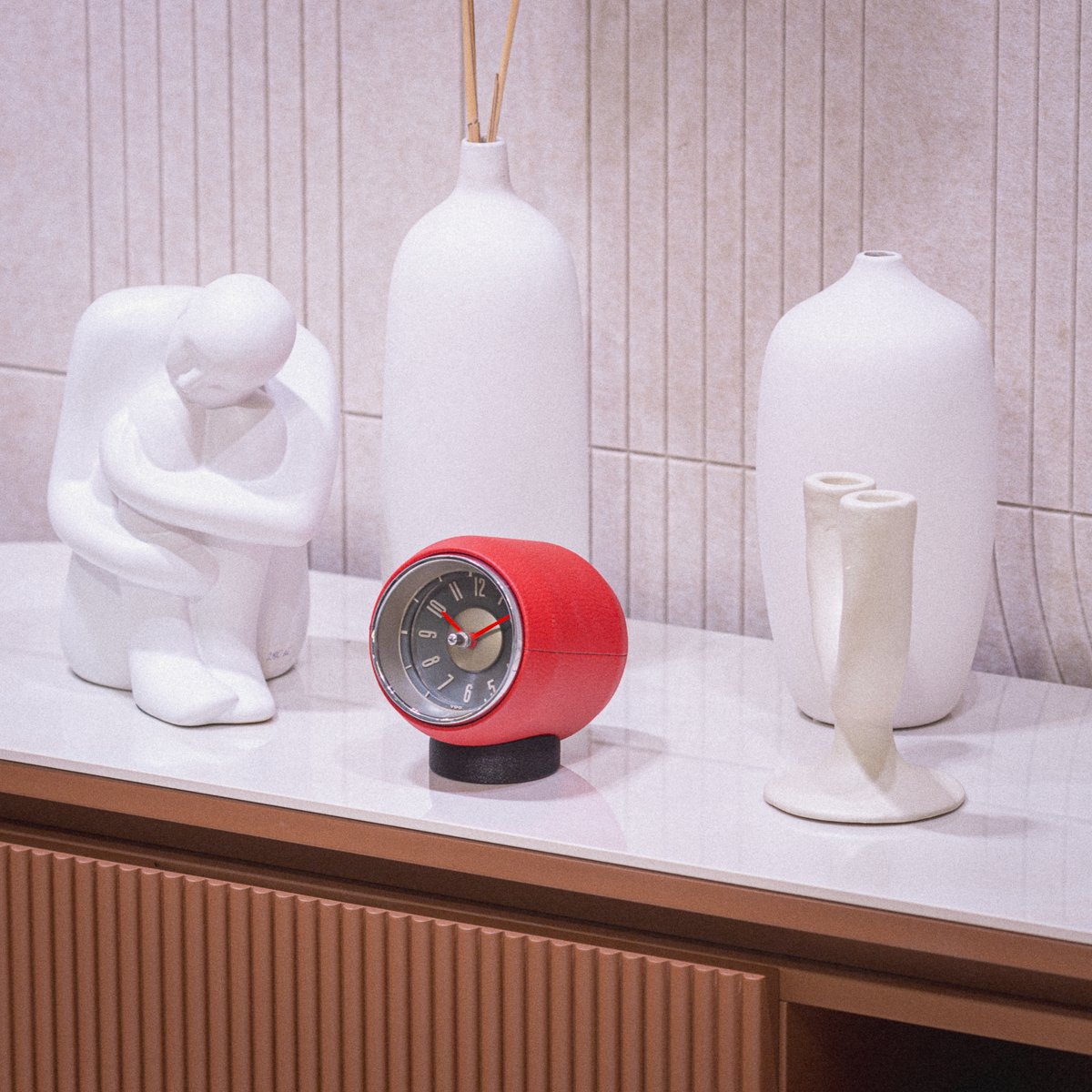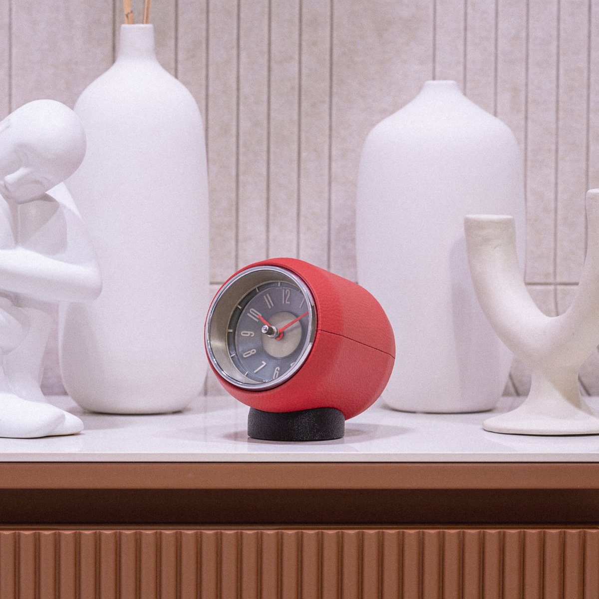 This small clock is a stylish addition to any interior with its mid-century design and variety of color options. Its automotive heritage is discrete but recognizable at the same time.